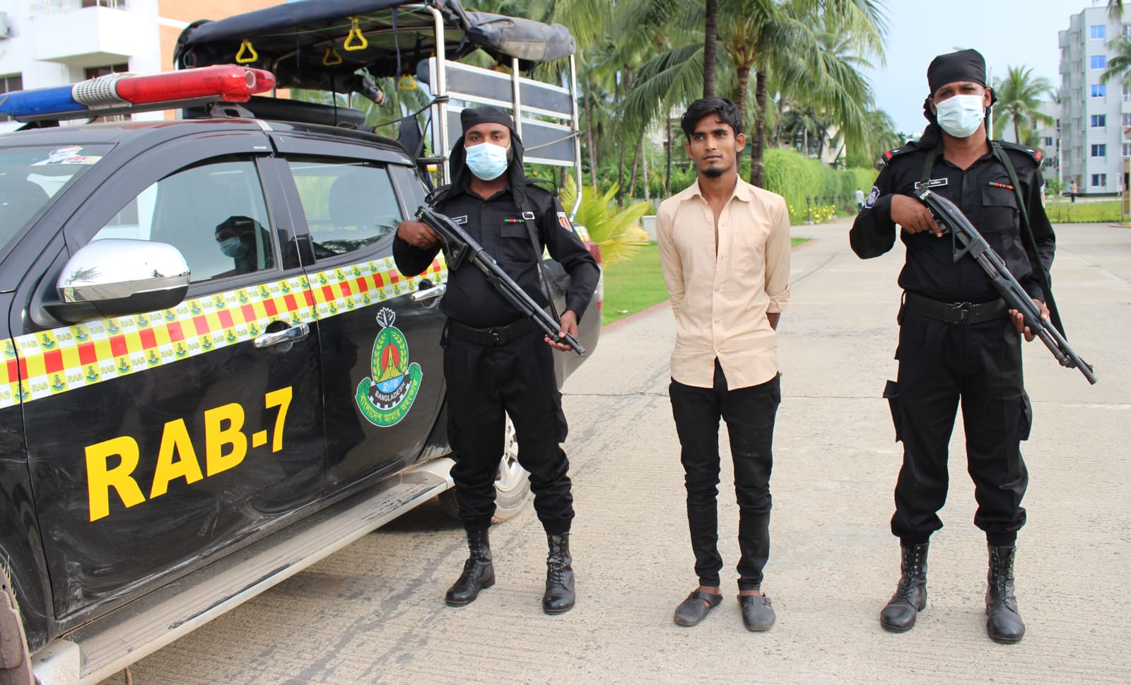 জানা যায়, ১২ ফেব্রুয়ারী দুপুর পৌনে ১টারদিকে র‌্যাব-৭, টেকনাফ ক্যাম্পের কমান্ডার লেঃ মির্জা শাহেদ (পিপিএম), এক্স বিএন গোপন সংবাদের ভিত্তিতে দক্ষিণ লেদা এলাকায় রাস্তায় চেকপোস্ট বসিয়ে যানবাহন তল্লাশীকালে টমটম হতে জোরপূর্বক বাস্তুচ্যুত মায়ানমার নাগরিক লেদা ক্যাম্প-১৪ এ ব্লকের বাসিন্দা হাবিবুর রহমান হাবিবের পুত্র মোঃ যুবায়ের (১৮) পালিয়ে যাওয়ার চেষ্টা করে। তাকে ধাওয়া করে গ্রেফতার পূর্বক জিজ্ঞাসাবাদে লোকজনের উপস্থিতিতে ঐ টমটমে অভিনব কায়দায় লুকানো অবস্থায় ৫ হাজার পিস ইয়াবা উদ্ধার করে। আটক যুবকের বিরুদ্ধে সংশ্লিষ্ট মাদক আইনে মামলা দায়েরের পর টেকনাফ মডেল থানায় সোর্পদ করা হয়েছে।